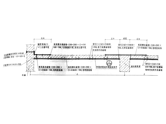 框架结构现浇板加大截面法加固板面布筋