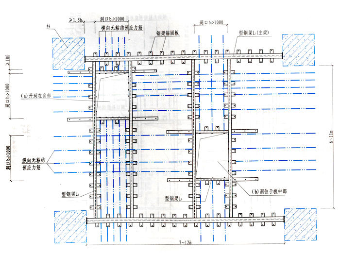 无粘结预应力无梁楼盖开洞增设型钢梁加固